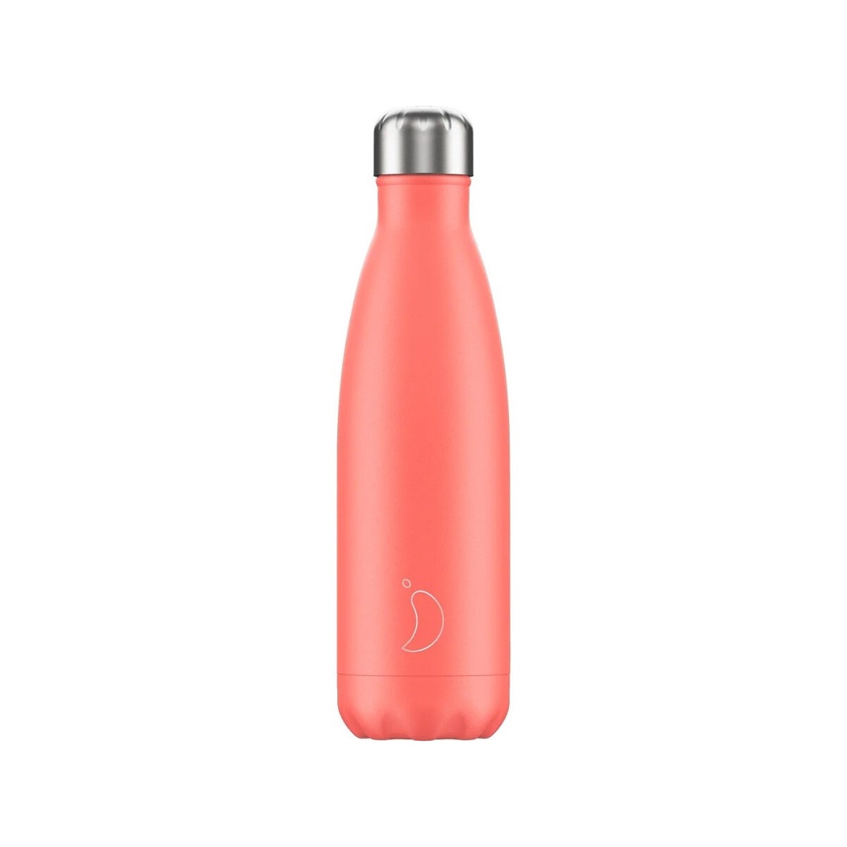 Reusable thermal bottle from the Pastel collection in coral color and screwed silver cap, 500ml capacity, matte finish.