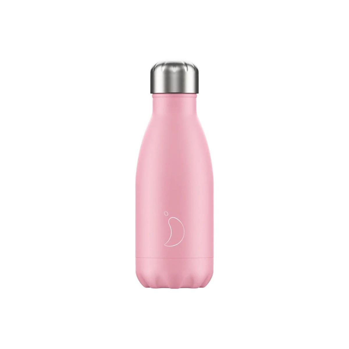 Reusable thermal bottle from the Pastel collection in pink color and screwed silver cap, 260ml capacity, matte finish.