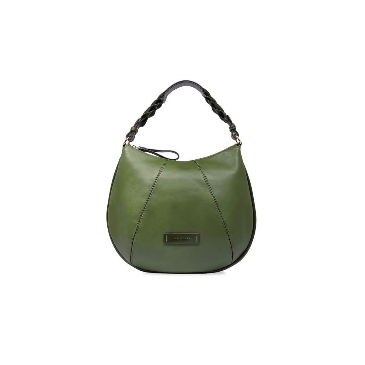 The Bridge bag made of genuine cowhide leather shoulder bag, tone-on-tone green. Made with main zip closure, single braided handle and internal pockets.