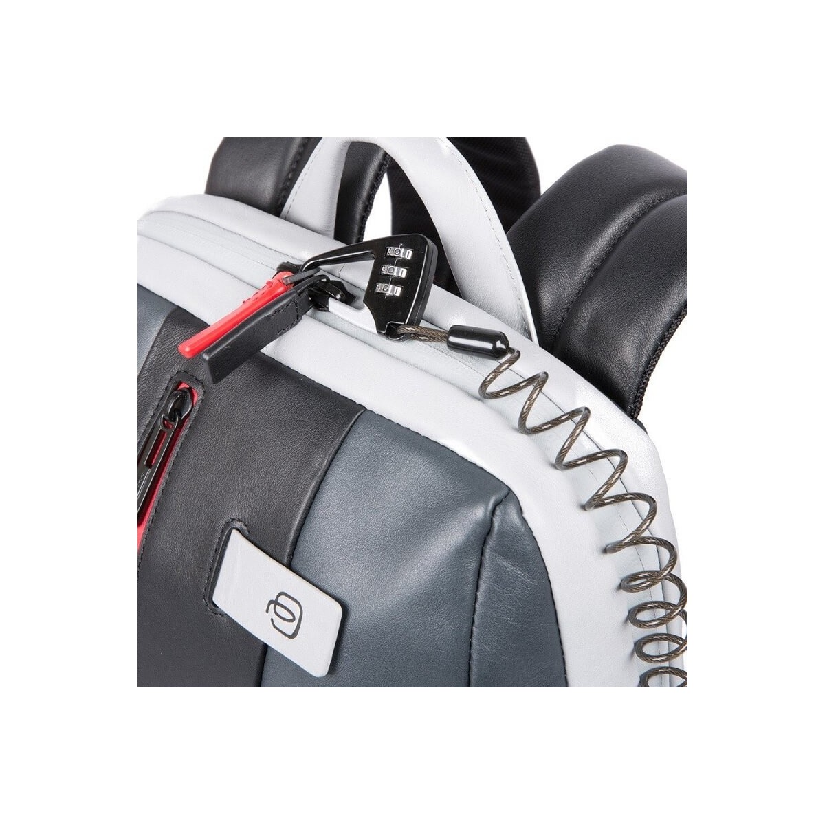 PIQUADRO PC and iPad® backpack customizable with CONNEQU, anti-theft and anti-fraud protection RFID from the BagMotic collection in gray and black.