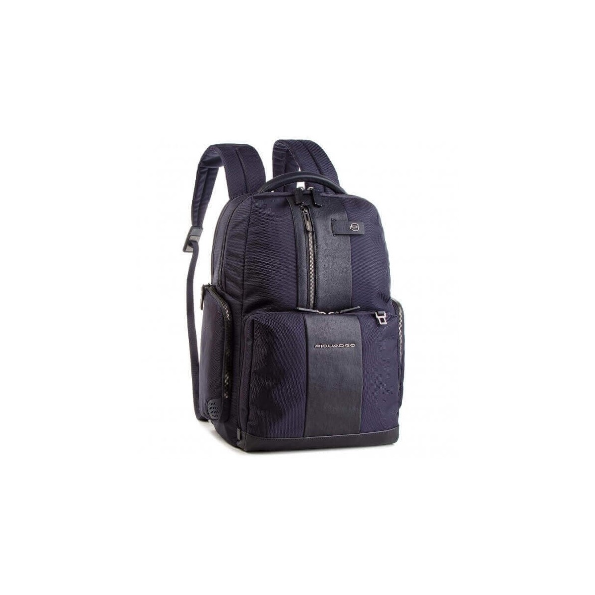 Brief collection backpack in fabric and leather with pc holder, bottle holder and integrated connequ