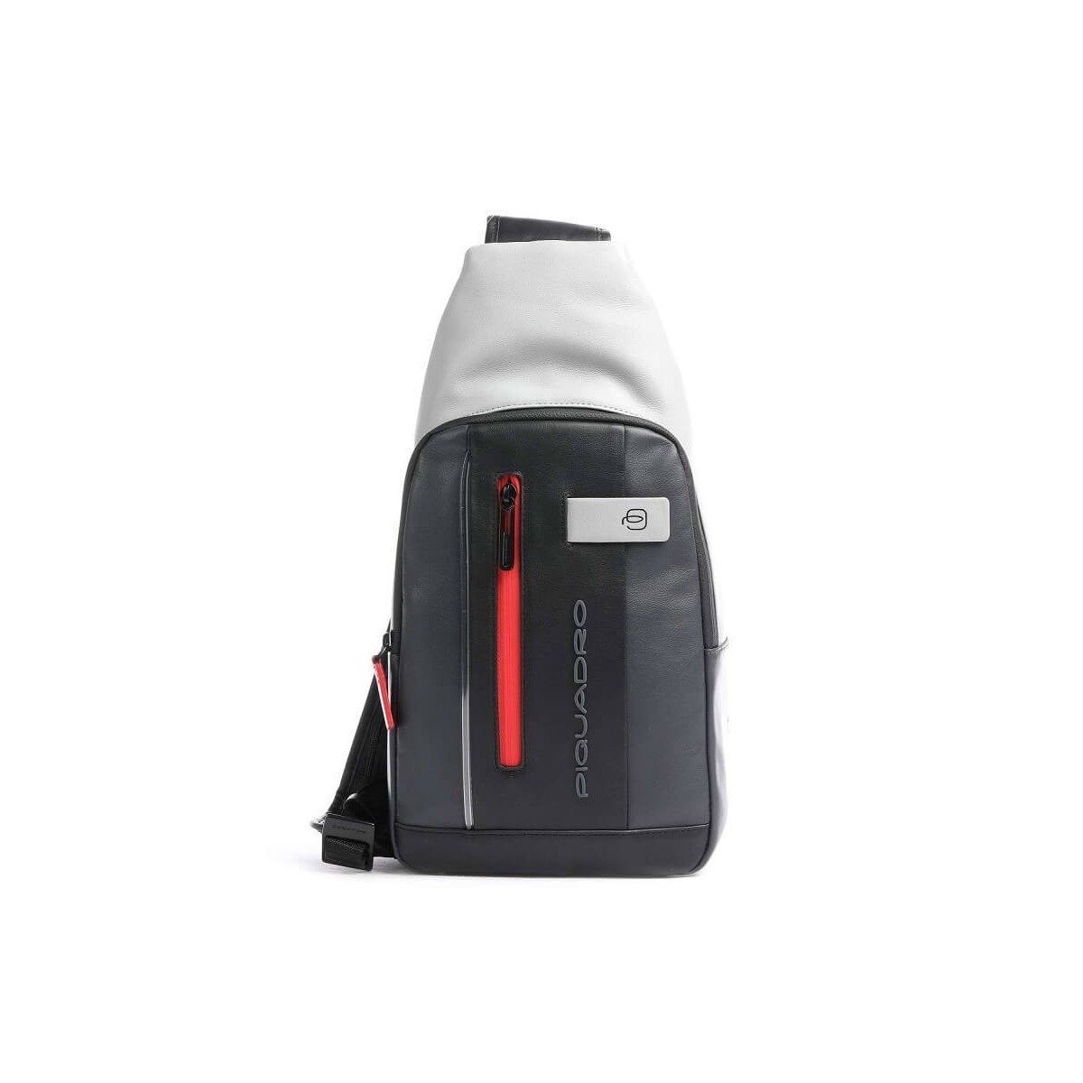 Piquadro one-shoulder backpack from the Urban line made of genuine cowhide with a fine grain and soft to the touch, two-tone, gray and black with small metal details. The shoulder bag features a large compartment with fixed internal organization and a front pocket with zip closure. The peculiarity of this shoulder bag is the LED light with 5 switching modes: fixed white light, flashing white light, steady red light, flashing red light and alternating light that can be activated using the appropriate button. Elegance that blends with functionality.