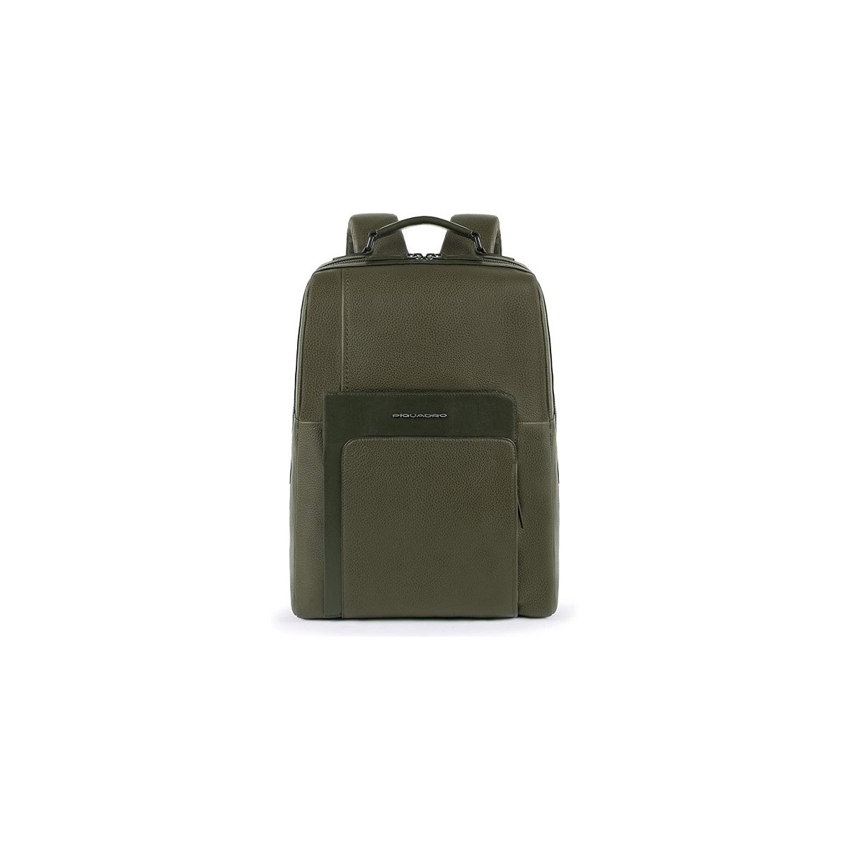 Piquadro backpack from the Feels collection in olive green with computer compartment. The Feels line is made of full-grain calfskin with a soft hand which, thanks to a matte and semi-gloss finish, creates fantastic contrasts. The metal accessories have a matte gunmetal or light gold finish in the case of feminine accessories.