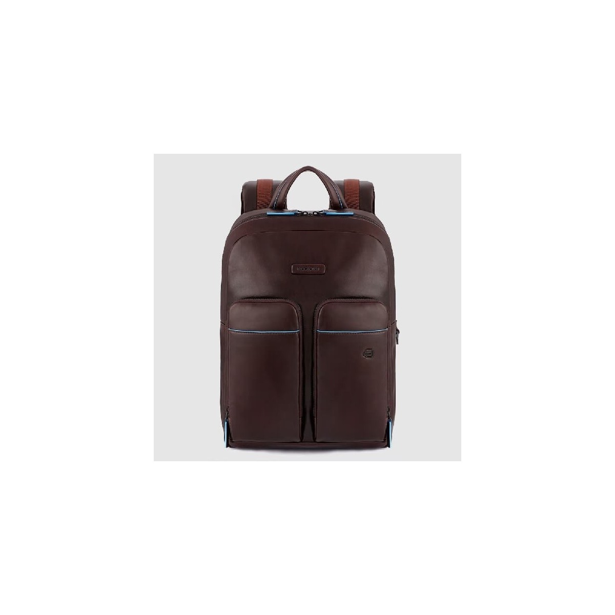 Piquadro Unisex backpack from the B2V collection made of genuine cowhide with a fine grain and soft to the touch, polished, mahogany color with small light blue inserts placed in contrast. The backpack is characterized by a single compartment inside which we find two padded pockets for Pc Laptop and Ipad and multifunctional pockets; externally we find four front pockets and one rear with RFD protection. The shoulder straps are adjustable and ergonomic for better comfort.