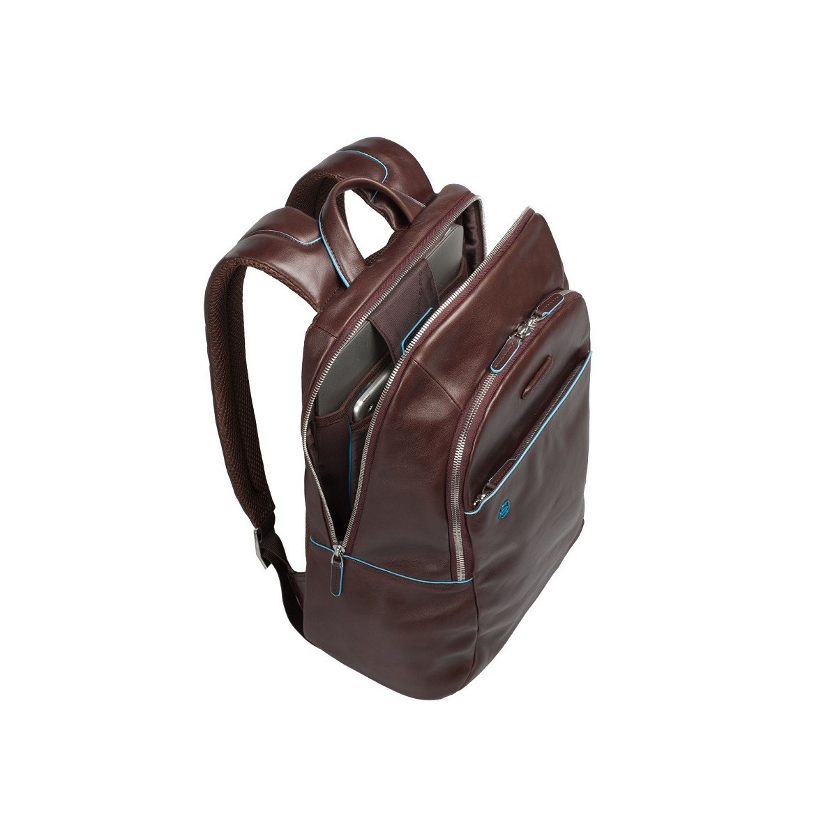 Laptop backpack with padded iPad compartment woman man Blue Square dark brown