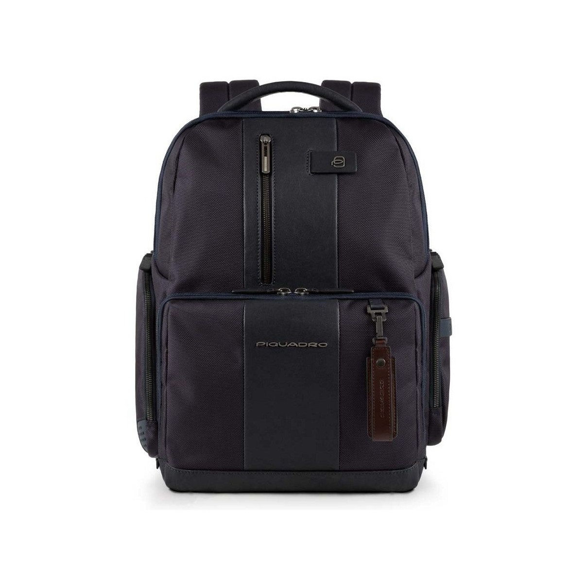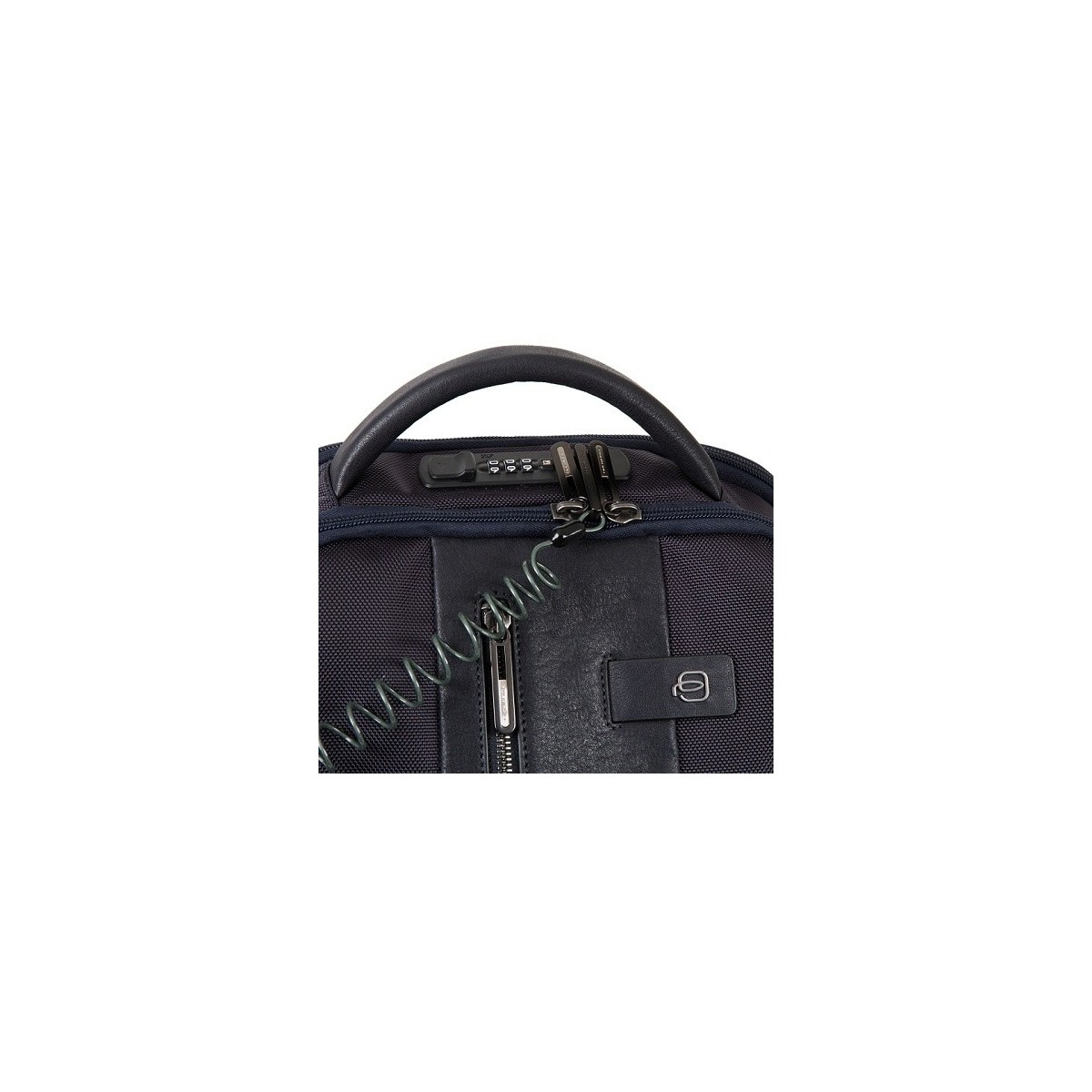 Blue with PC / iPad®Air / Pro 9.7 port, anti-theft cable, USB and Micro-USB plug, RFID anti-fraud. The Brief line is made of vegetable-tanned full-grain calfskin with a non-homogeneous look due to the artisanal washing process, combined with a water-resistant technical fabric. All models have design metal accessories with a double gunmetal finish and a brushed metal insert, marked Piquadro.
