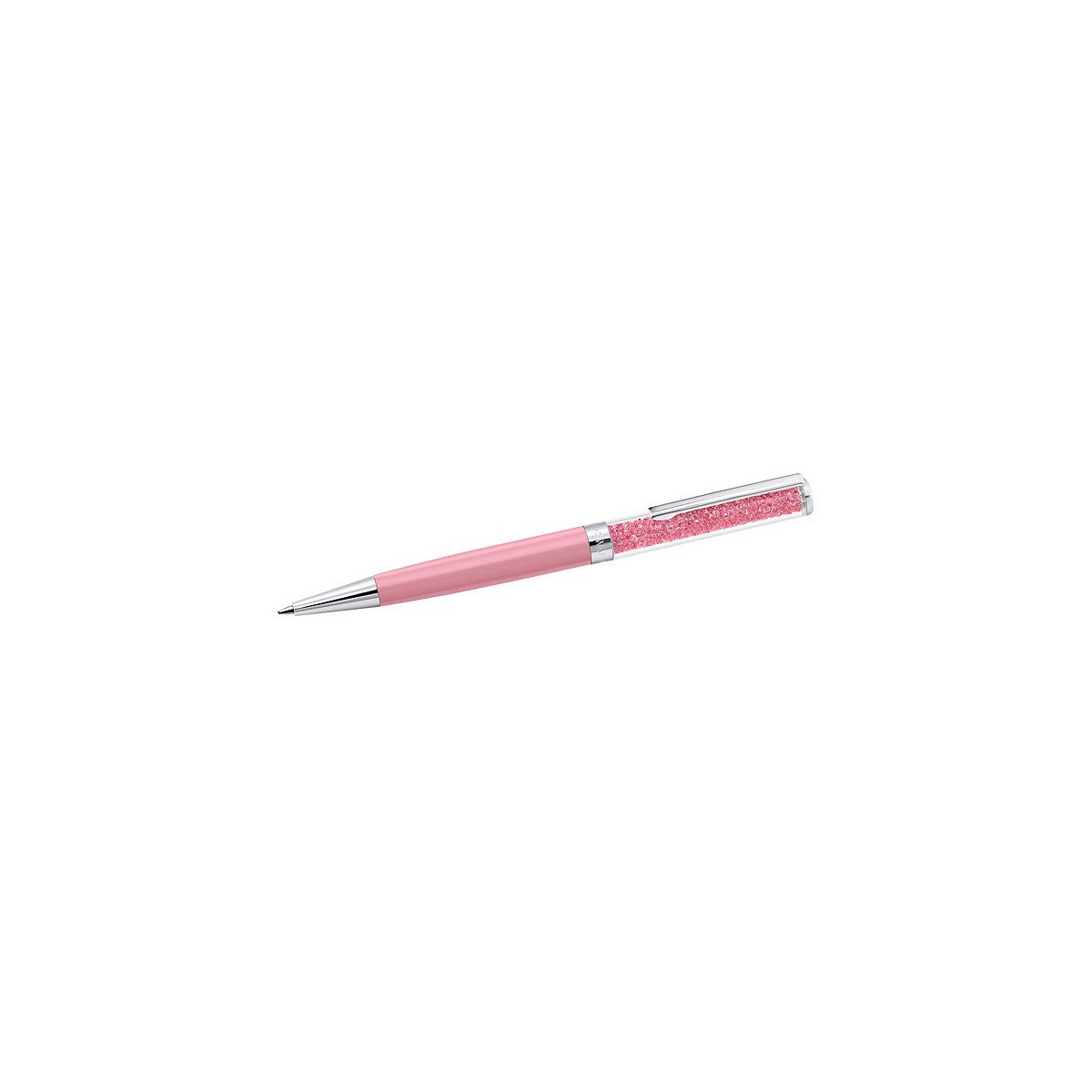 Crystalline Ballpoint Pen with 540 Clear Crystal pink lacquered metal frame and chromed metal clip. Engraved Logo