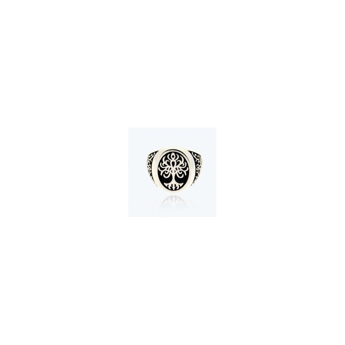 Ring of little finger, Tree of Life, 925 silver, medium shield model in shiny silver and burnished 925 with the symbol of the tree of life and possibility of engraving