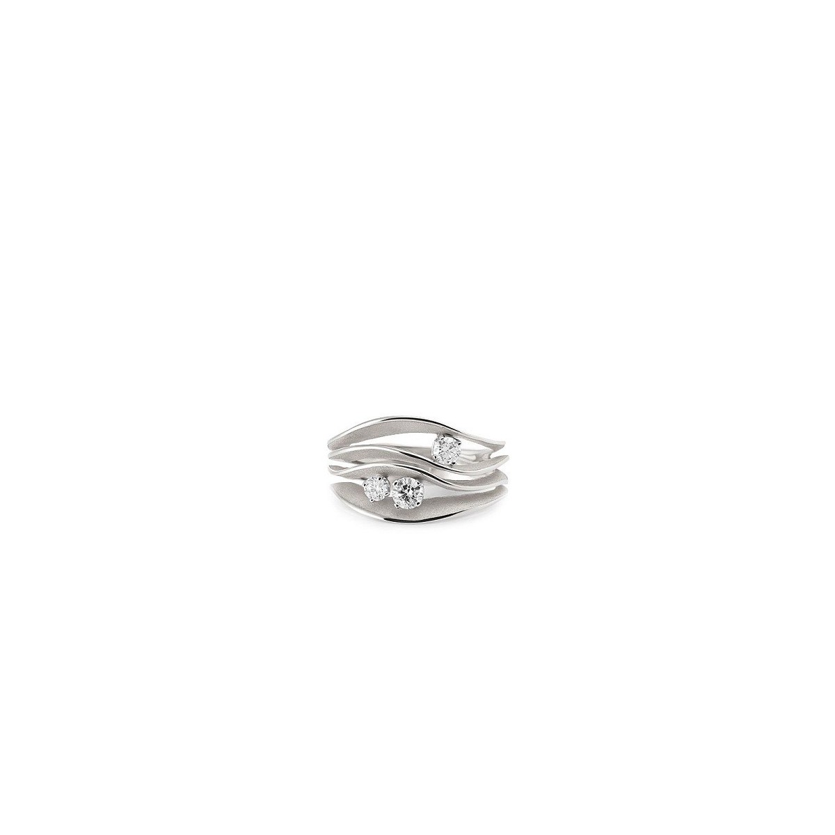 Ring Essential Dune Precious Collection with four bands in white gold palladium 750 ‰ polished and satin with three natural diamonds - GAN2681W