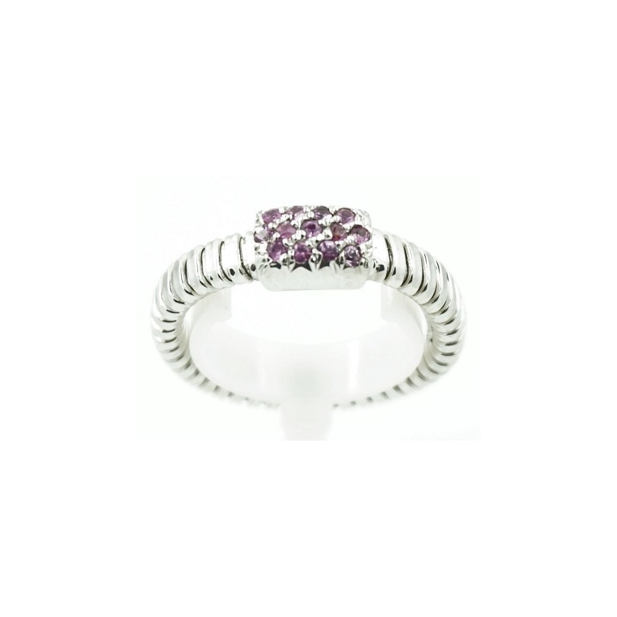 Ring gem amestita 18kt white gold tubular pattern Dim. 14