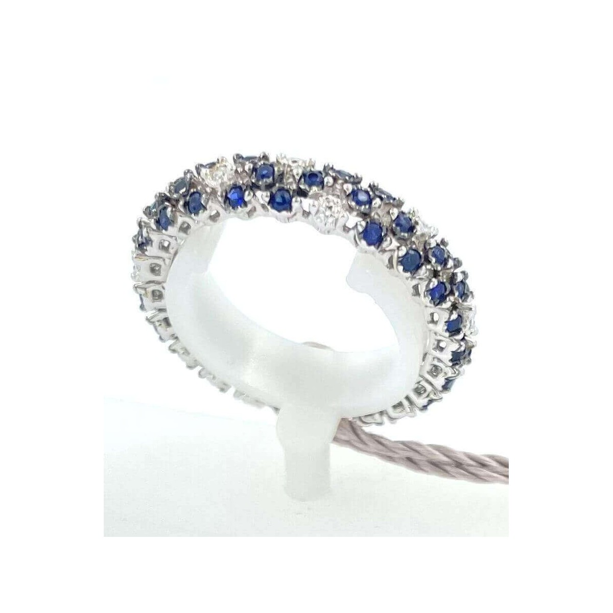 Ring made with a network of sapphires and diamonds, three rows, which give this jewel a carpet effect of precious gems.