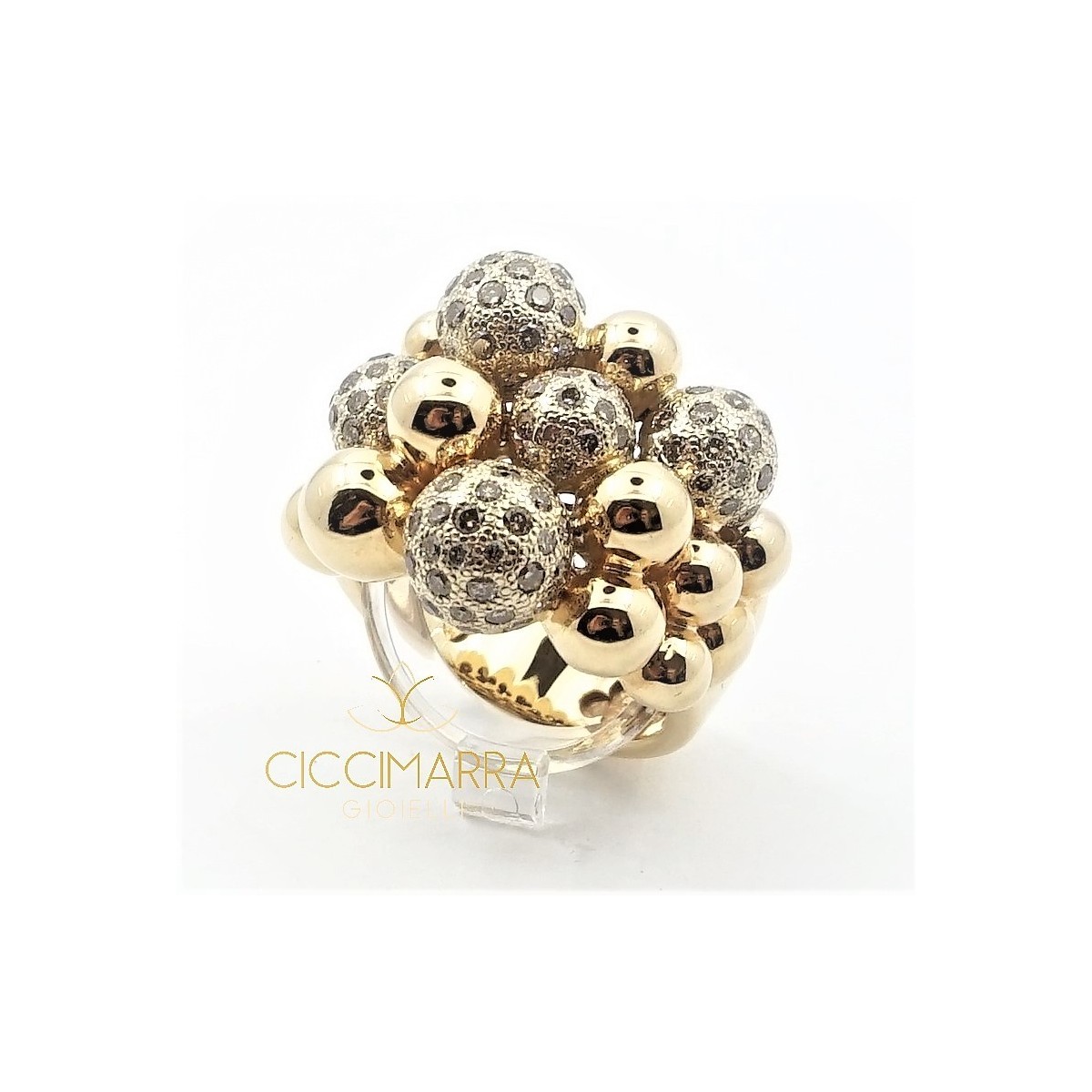 Ring, working to ball-bearing, in 18 kt rose and satin pink gold with natural brilliant cut brown diamonds