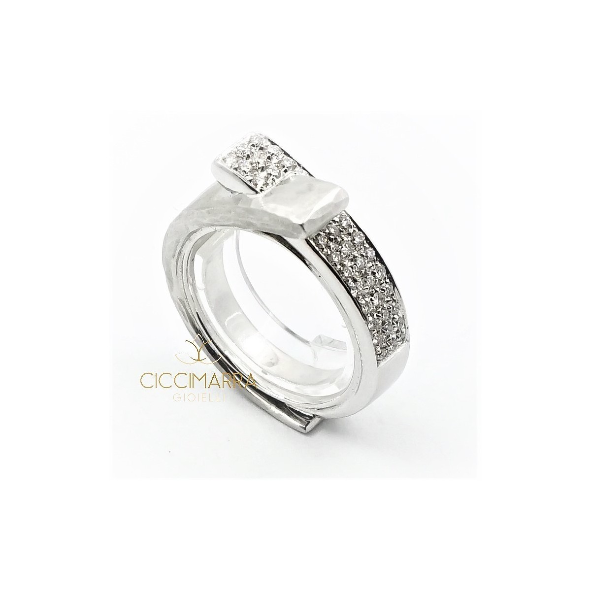 Ring in 18kt white gold hammered satin and polished with natural diamonds brilliant cut on a band
