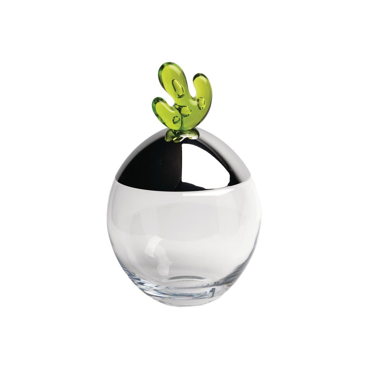Alessi cristellino glass cookie jar with lid in stainless steel 18/10 and knob in san green bud