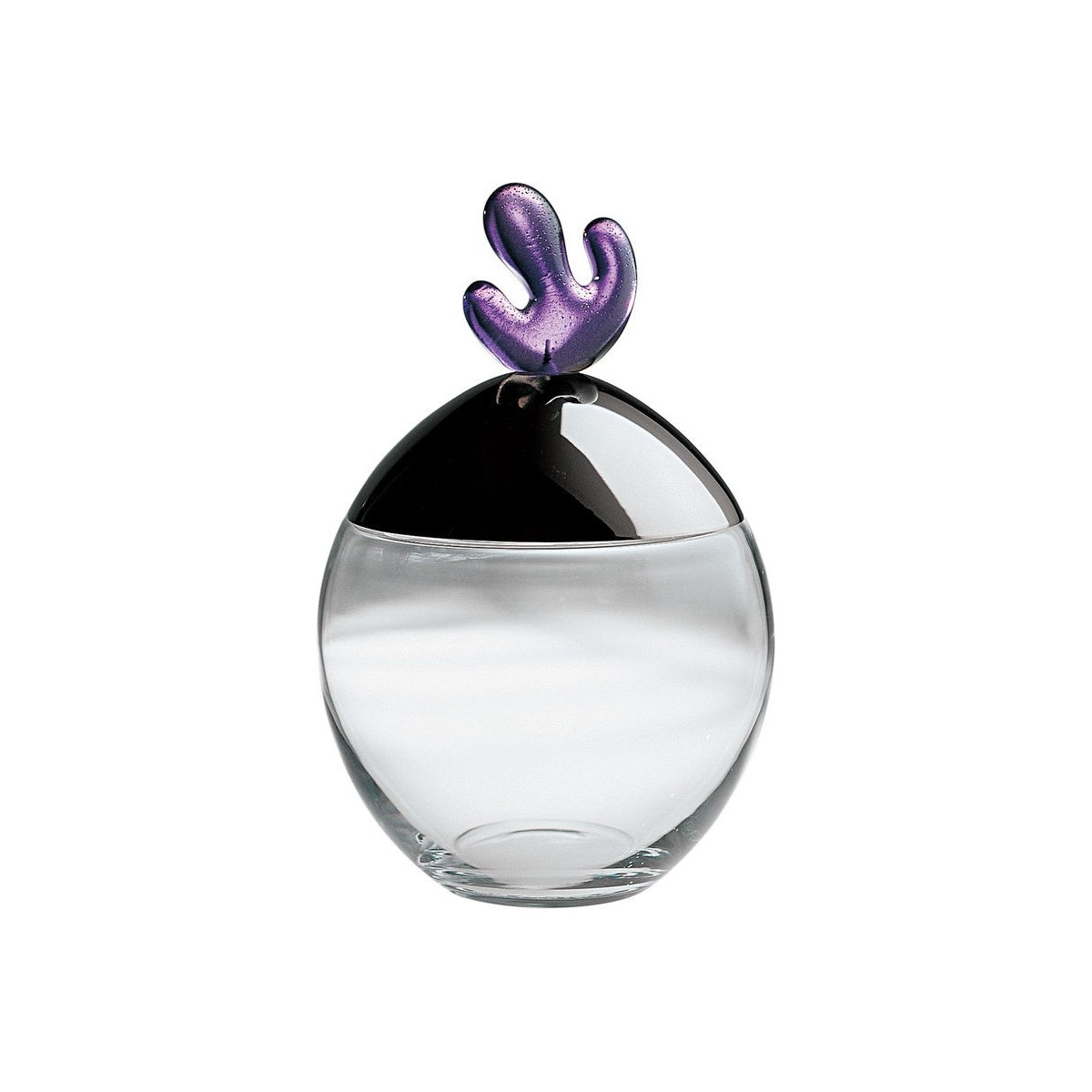 Alessi cristellino glass cookie jar with lid in 18/10 stainless steel and blue knob in san