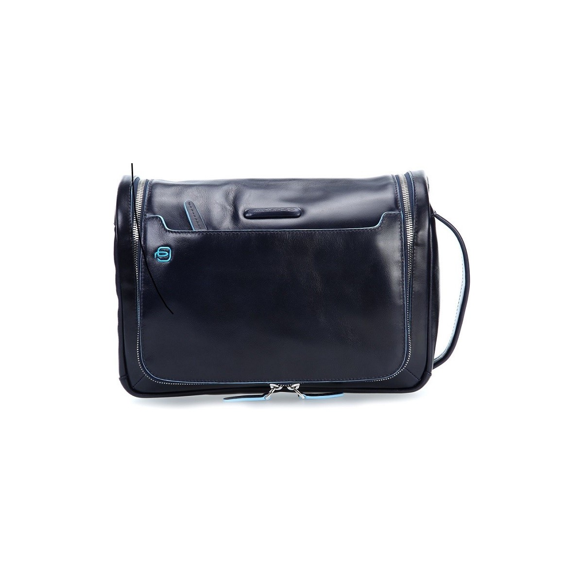 Travel beauty case stows in leather suitcase with side handle, blue with turquoise and edge engraved logo-BY3853B2/Blue2