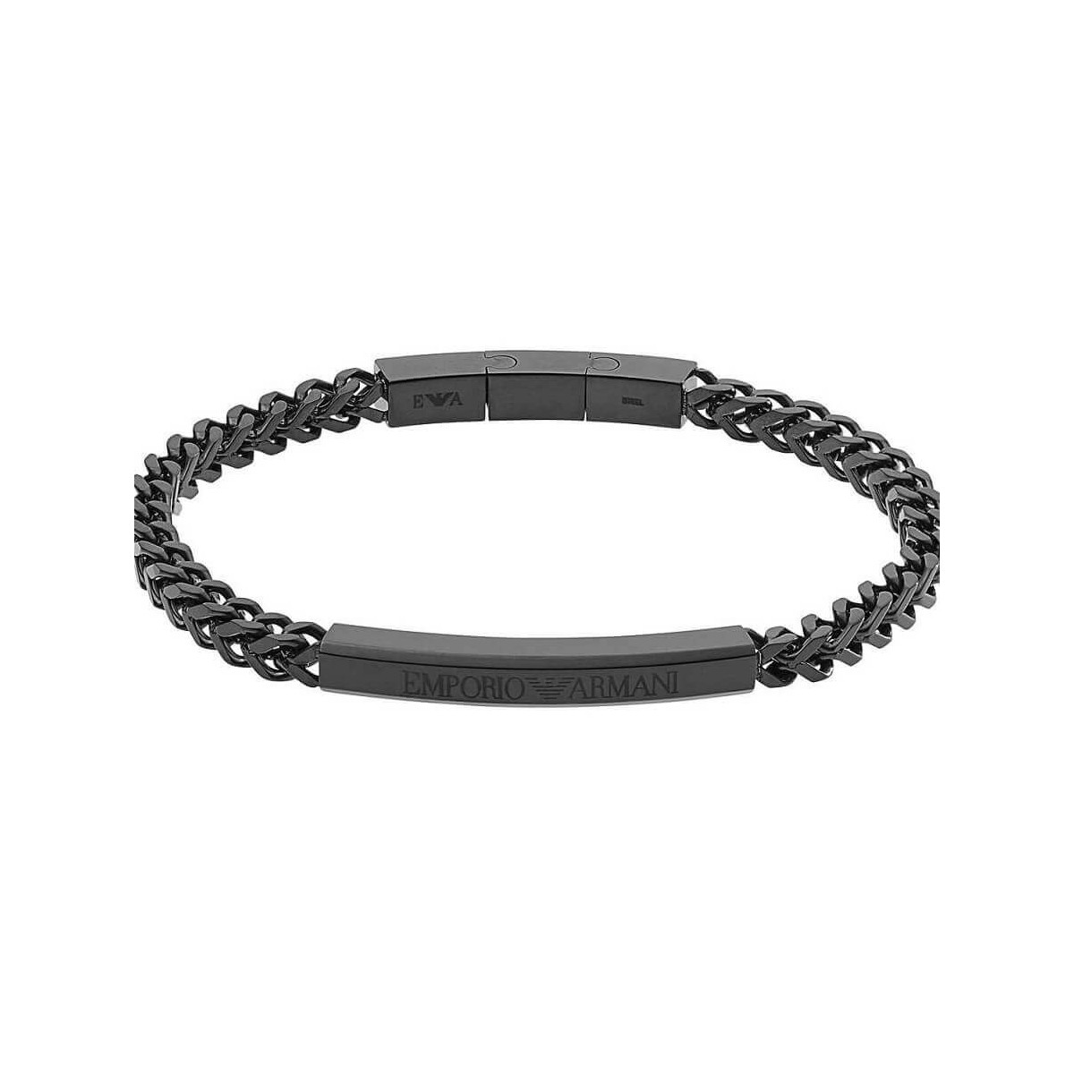 Emporio Armani men's bracelet Black PVD Men's bracelet in stainless steel with matte finish and embossed logo and company on the rigid part, while chain in the soft part. Armani black pvd bracelet features: Minimum Length Of 21 Cm Maximum Length Of 22 Cm Reference: EGS2416040 Official Certificate and Warranty Emporio Armani Gioielli for 2 years