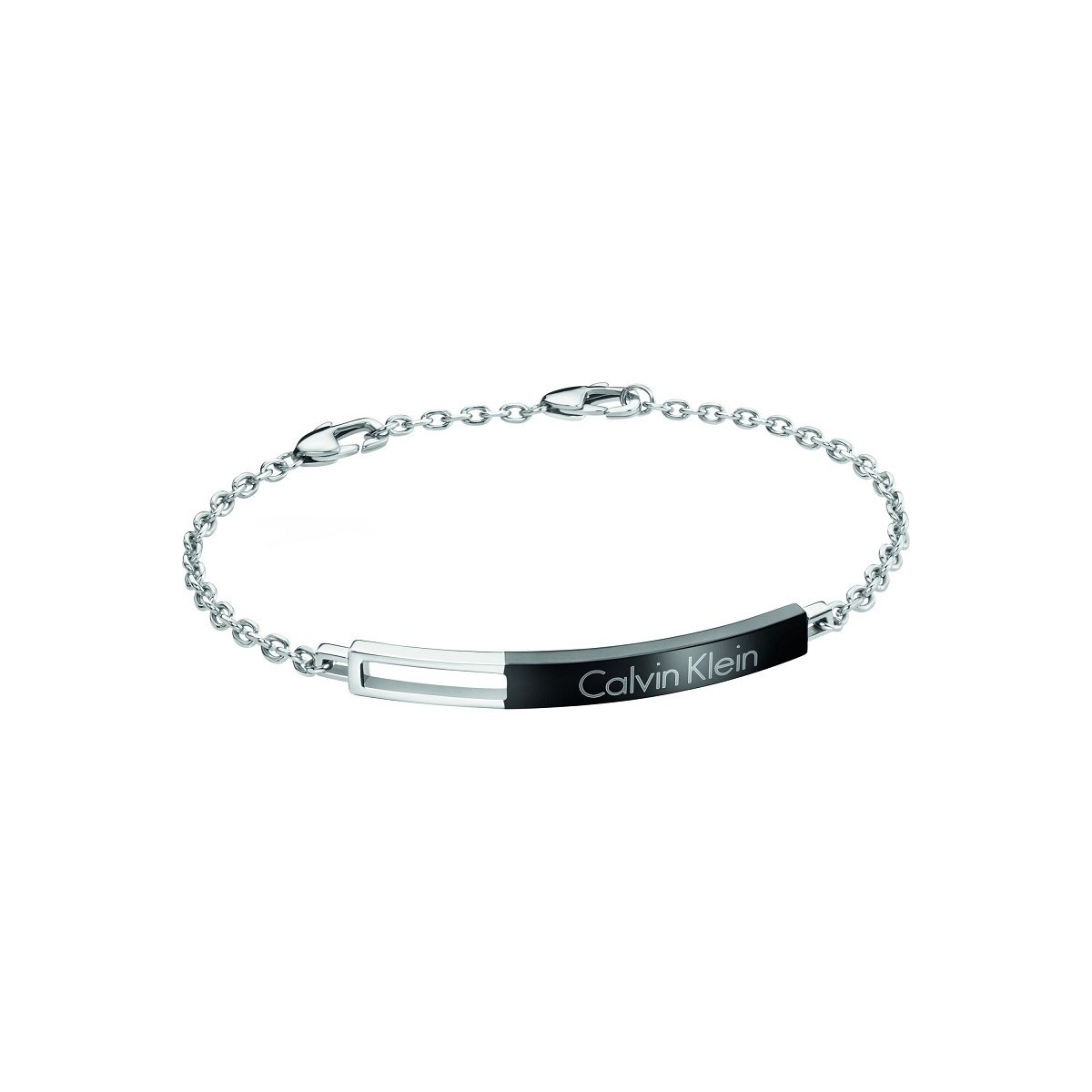 Calvin Klein steel bracelet with black pvd steel plate and engraved logo; carabiner closing autumn winter new collection