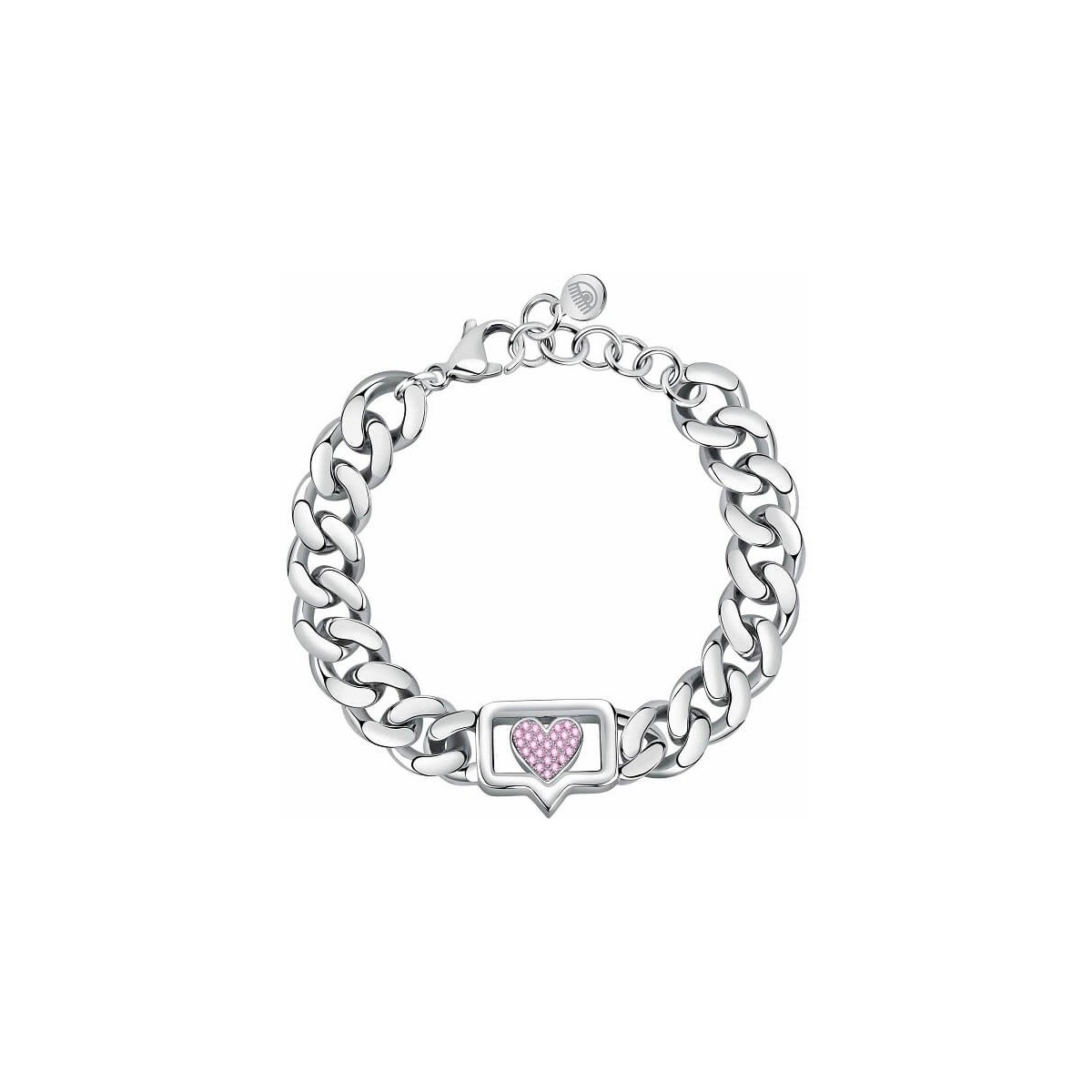 Silver chain bracelet with pink heart pavè Chiara Ferragni Bossy Chain