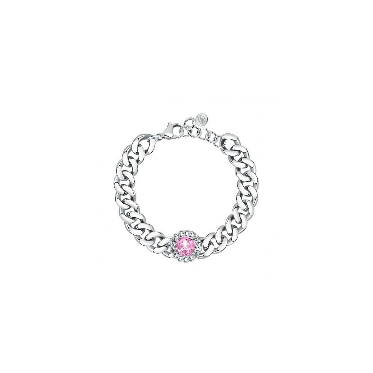 Silver chain bracelet from the Bossy Chain collection with central pink zircon