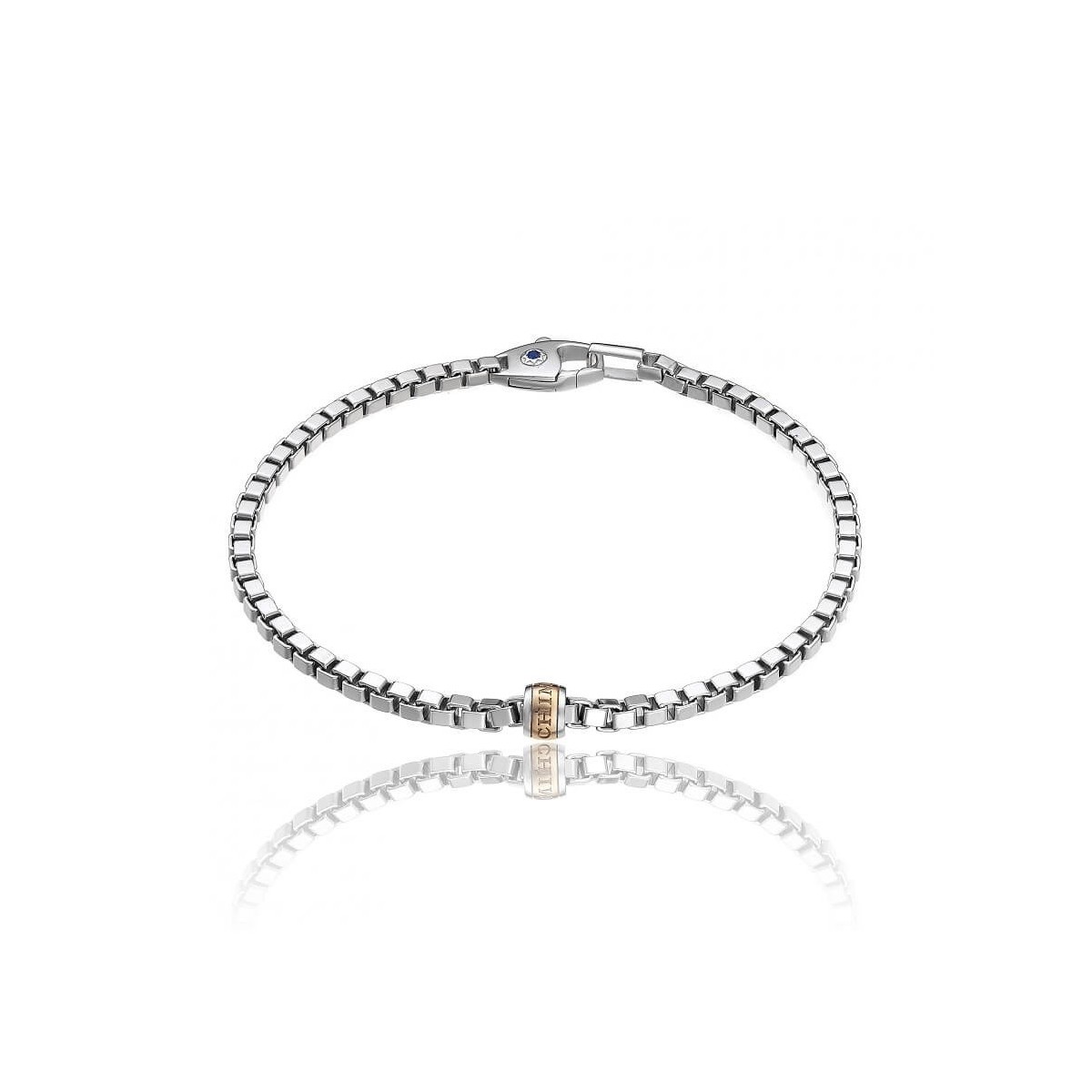 Chimento men's bracelet, Venetian mesh in two-tone silver with sapphire