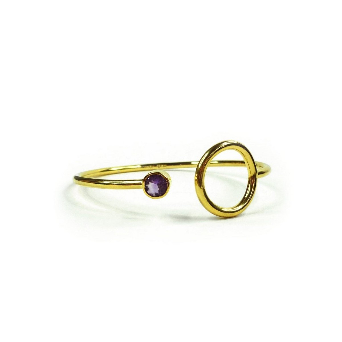 Bangle of the Unity line with a precious Amethyst gemstone, 23.5k gold-plated brass.