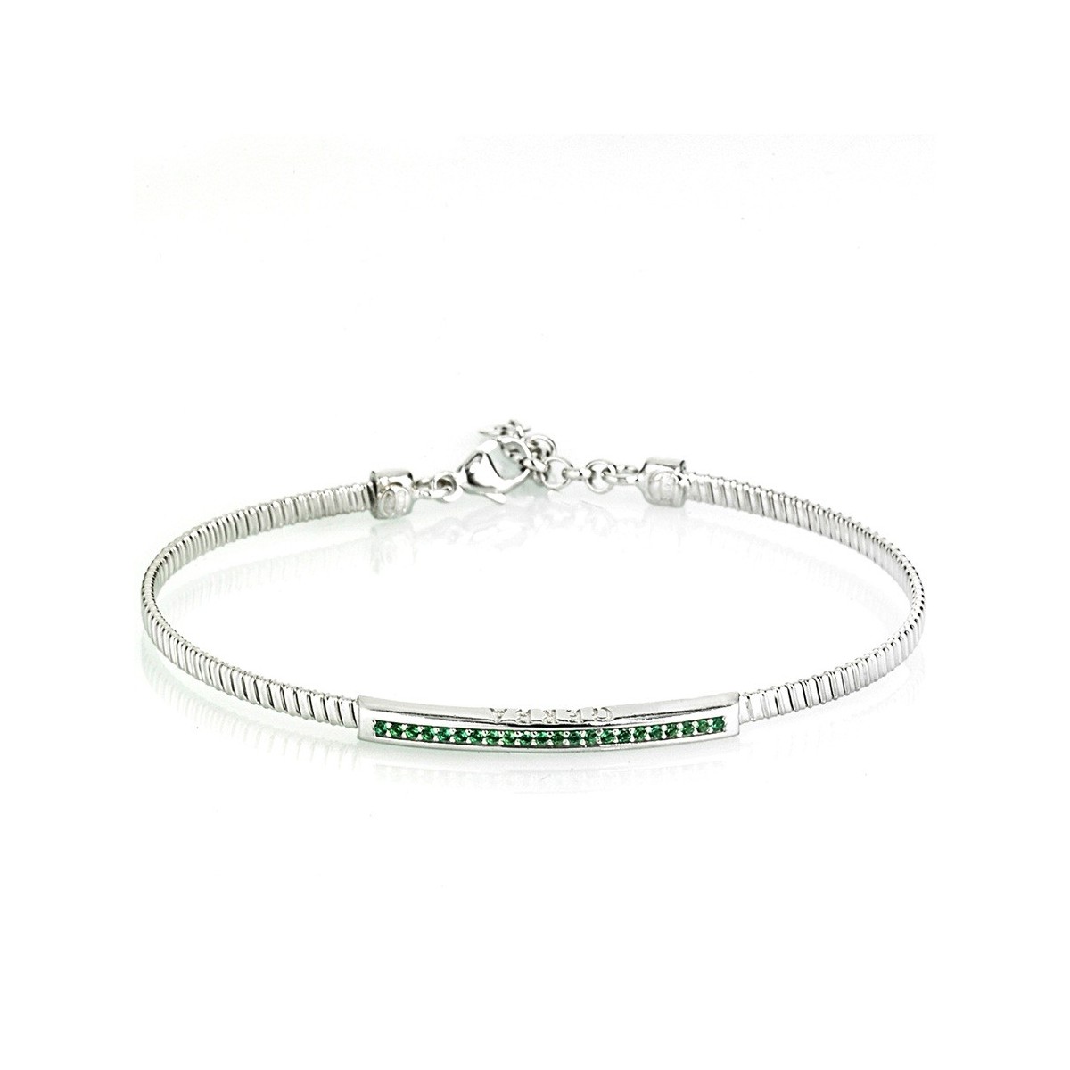 925 silver-plated semi-rigid bracelet and green zircons