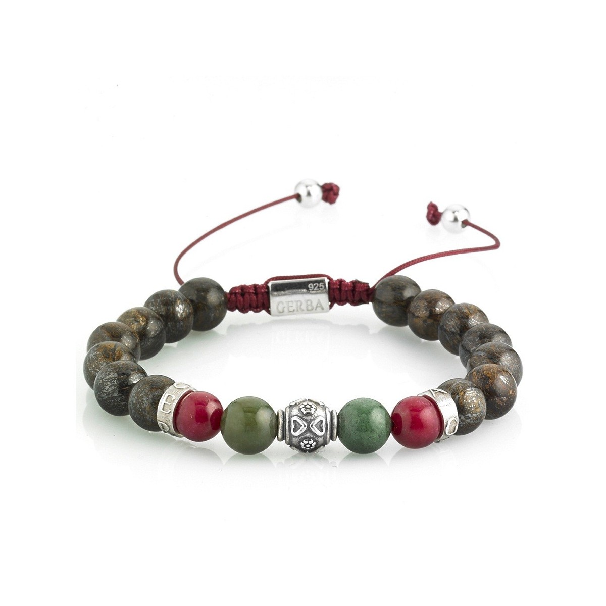Handmade Macrame Bracelet with Bronzite Stone, Red Tiger Eye, Sodalite, Logo and Silver 925 Silver.