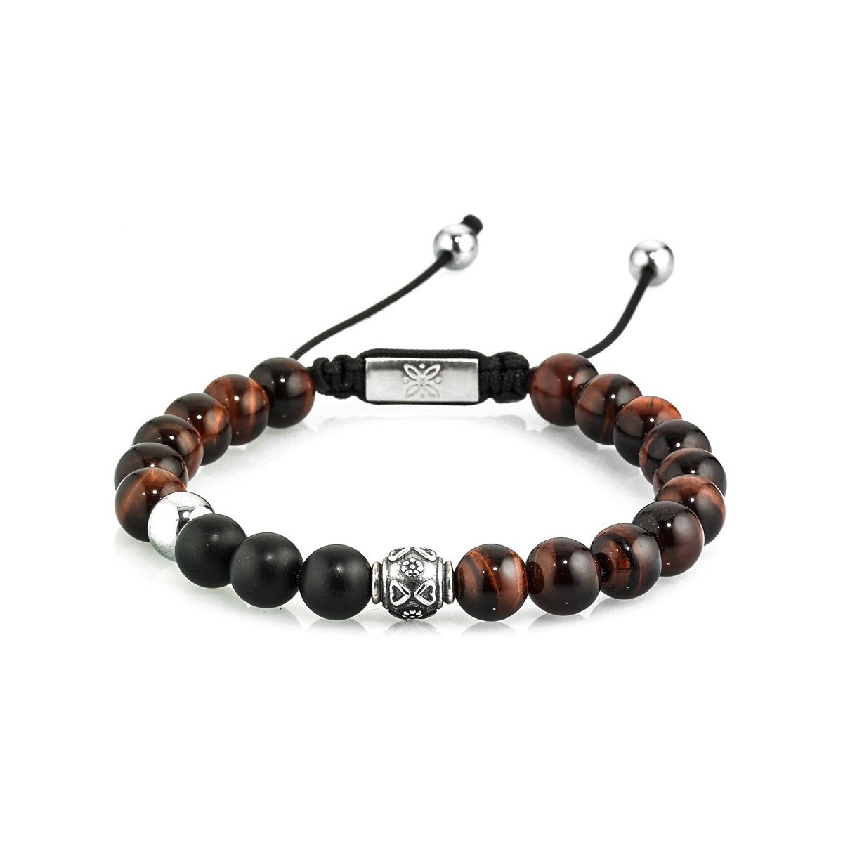 Handmade macrame stone bracelet with red stones onyx, onyx, Logo and Silver 925 silver.