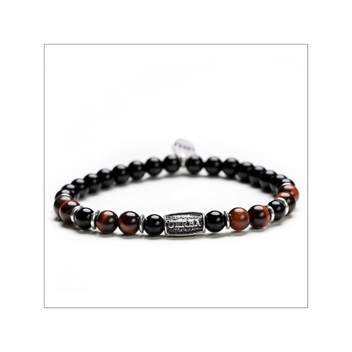 Elastic bracelet made of red tiger eye stones and details made of 925 silver.