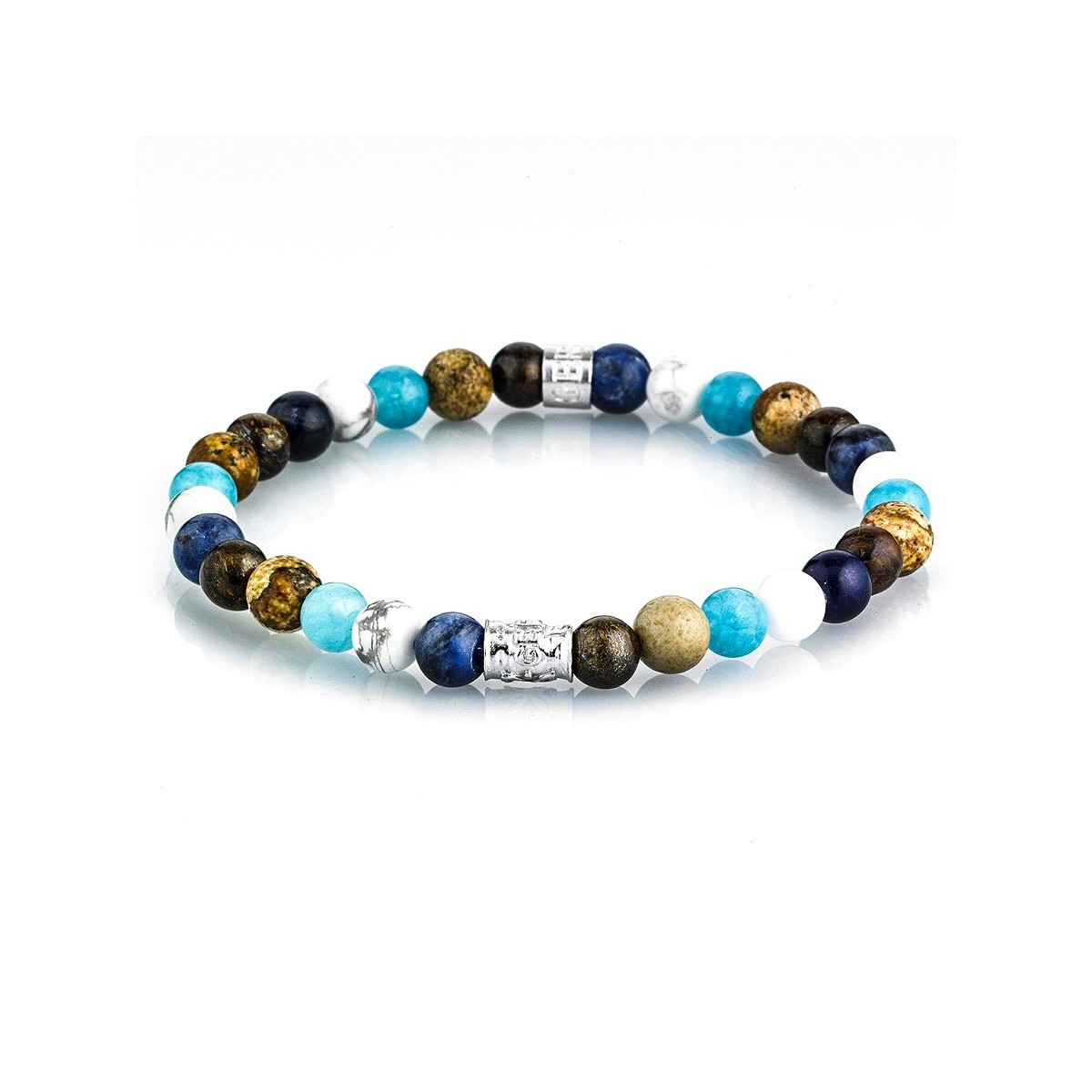 Hand-woven elasticated bracelet with Sodalite, Angelite, Bronzite, Diaspro, Agate, Logo and Silver 925 Silver.