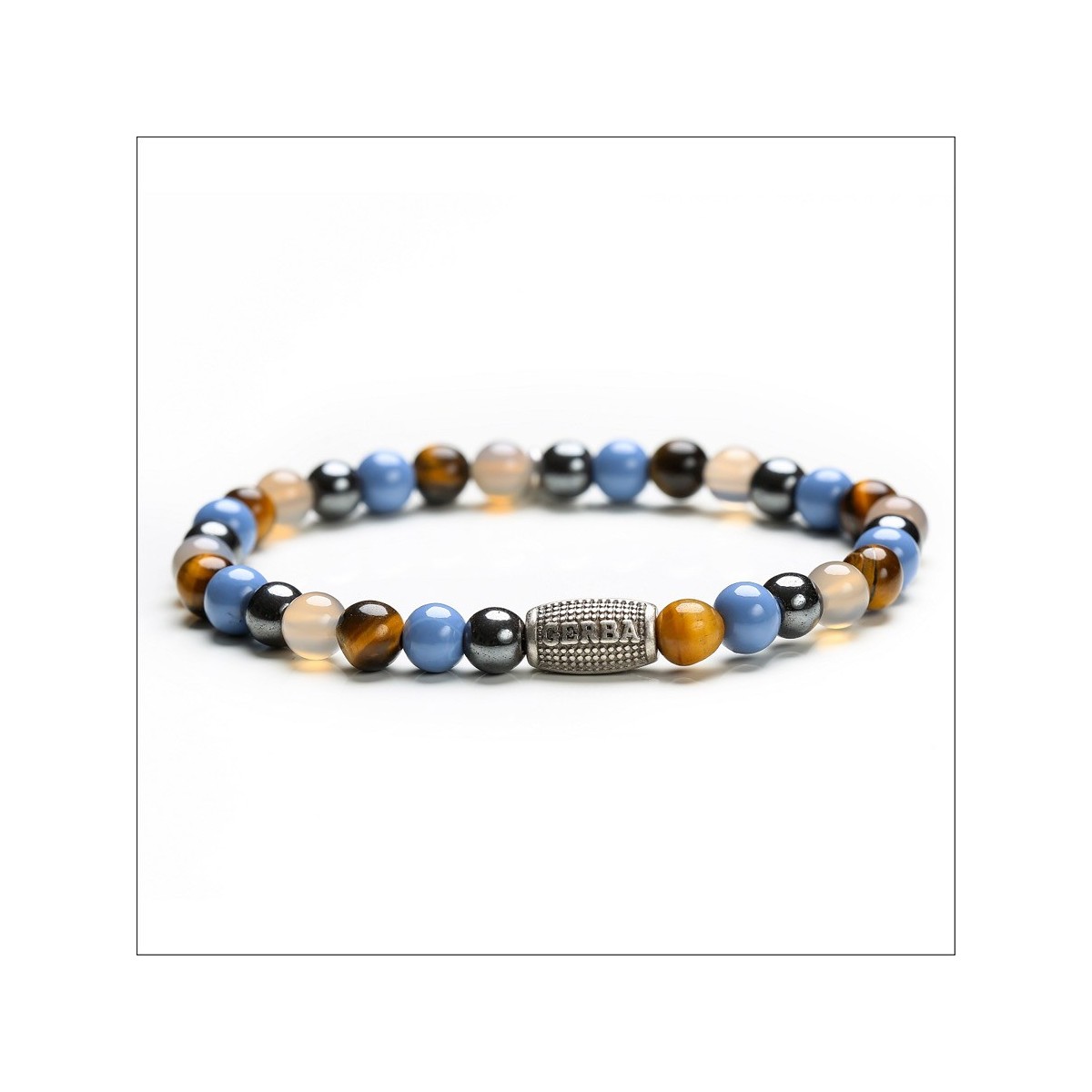 Elastic bracelet made of tiger-shaped stones, agate, jasper, emathite and details made of 925 silver.