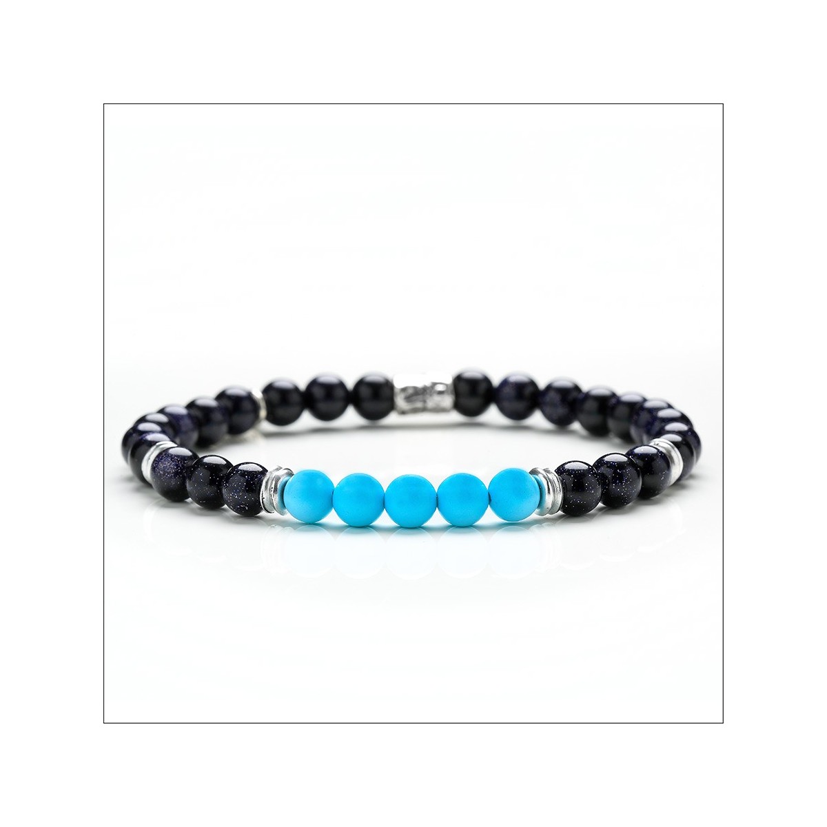 Elastic bracelet made of stones Turquoise and Agate pasta and details made of 925 silver.
