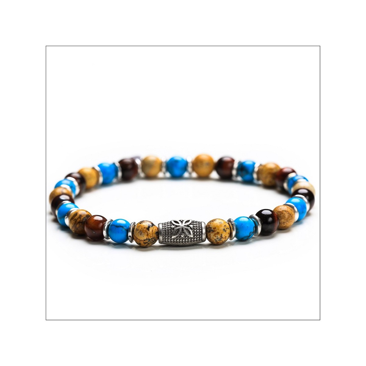 Elastic bracelet made of stone stones, tiger eye, jasper and details made of 925 silver.