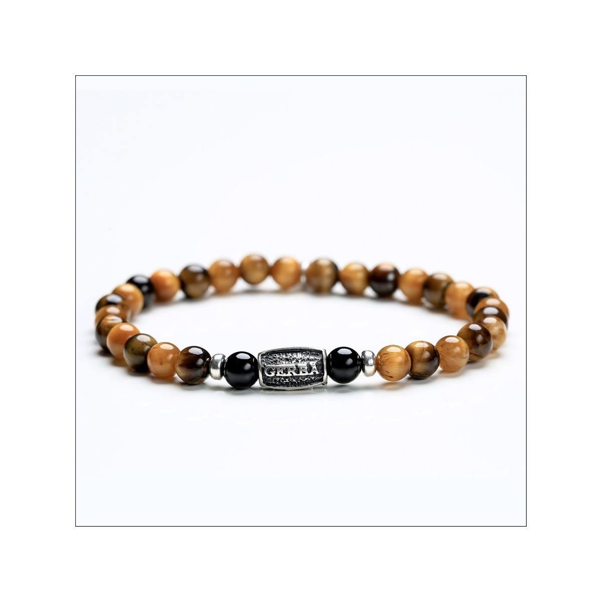 Elastic bracelet made of tiger eye stones and details in Silver 925.