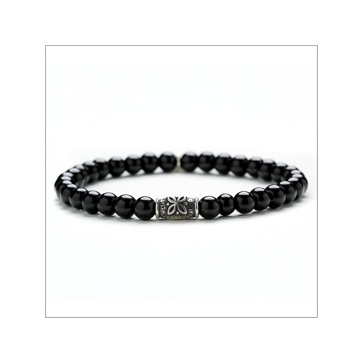 Hand made elastic bracelet with Onice stones and details made of 925 silver gold.