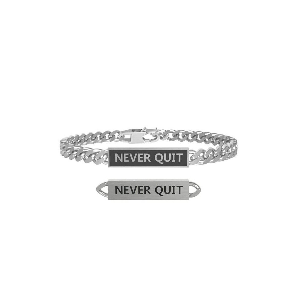 Men's steel bracelet with phrase and meaning Never give up, even when everything seems lost. If there's a time to hold on, it's when everyone is inviting you to let go.