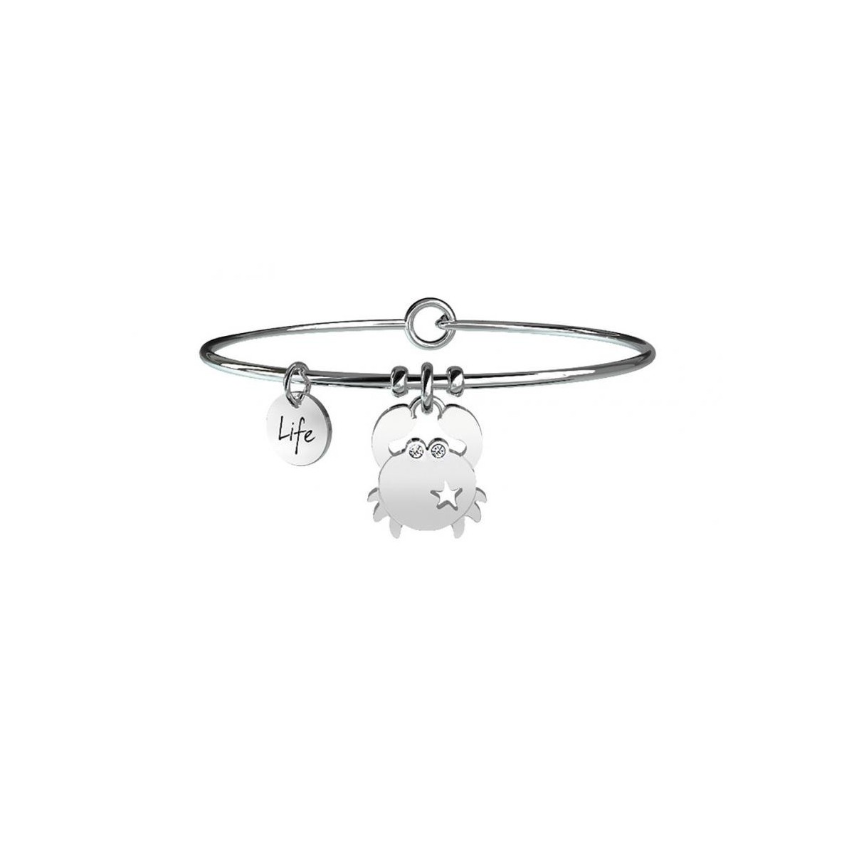 Sturdy steel bracelet with pendant and light point crab shape brings luck and ruddy round closure protection