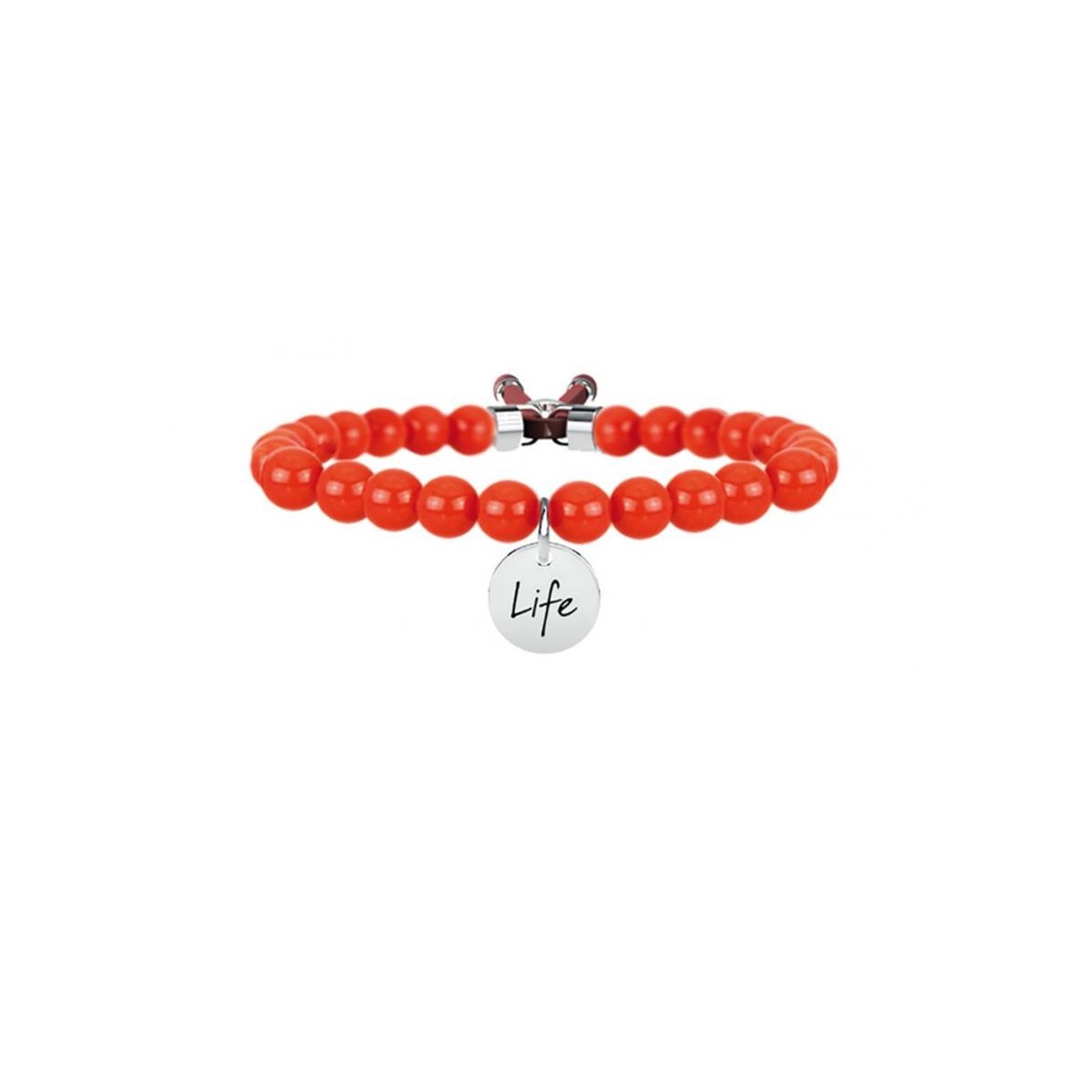 Steel pendant bracelet and red coral orange elastic stones with adjustable closure