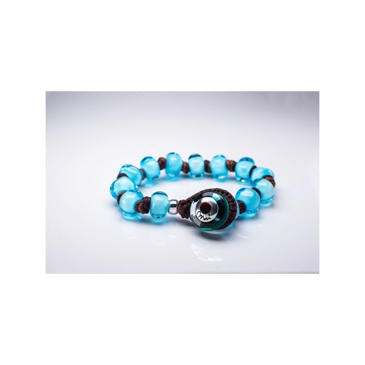 Original Moi men's and women's bracelet with fabric cord and turquoise Murano glass beads, designer Franco Cannarile - Bikini