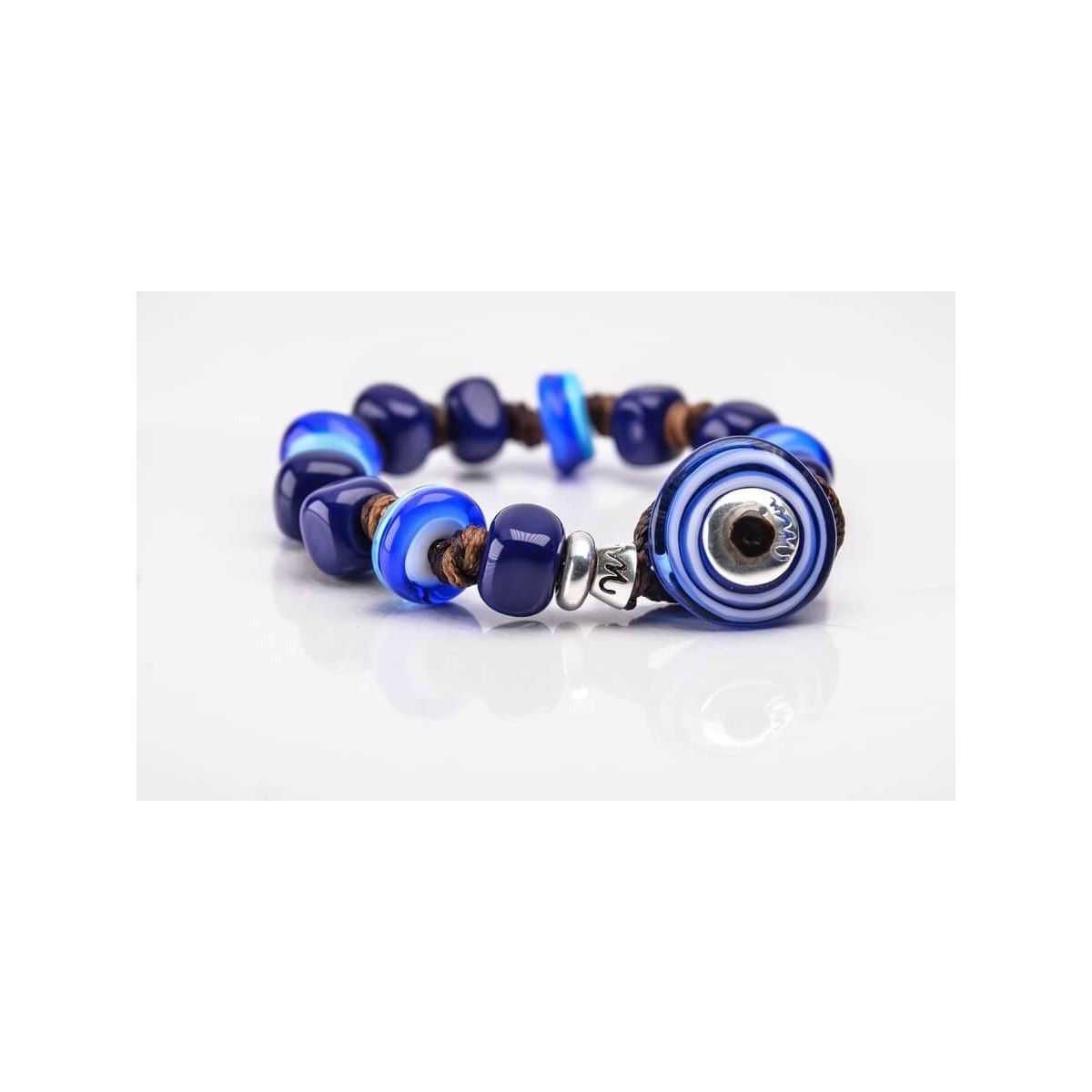 Original Moi men's and women's bracelet with fabric cord and blue murano glass beads, designer Franco Cannarile - Deepblue
