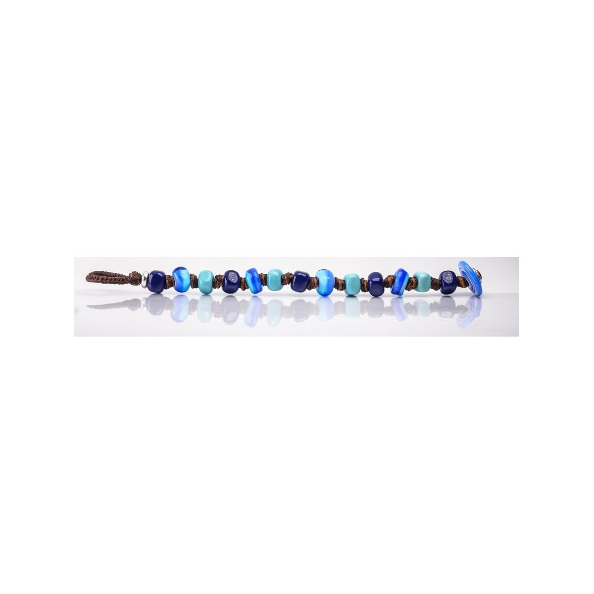 Original Moi men's and women's bracelet with fabric cord and blue and light blue Murano glass beads, designer Franco Cannarile - Poseidon