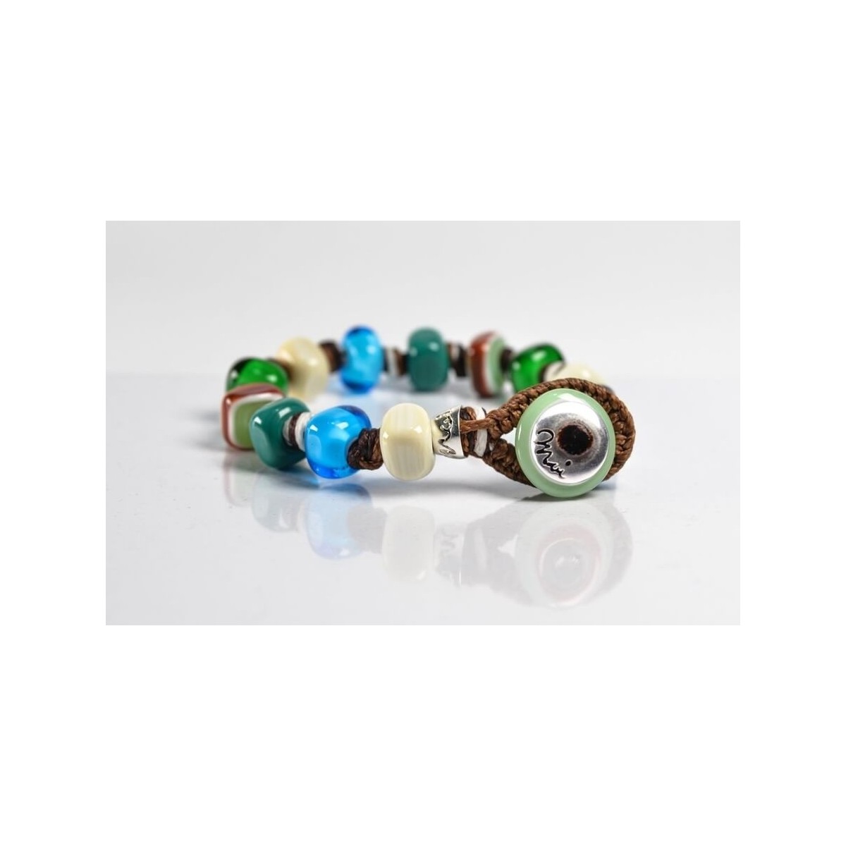 Original Moi men's and women's bracelet with fabric cord and white, light blue, green and brown Murano glass beads, designer Franco Cannarile - Silva