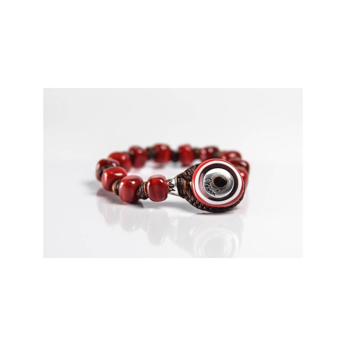 Original Moi men's and women's bracelet with fabric cord and carmine red murano glass beads, designer Franco Cannarile - Carmine