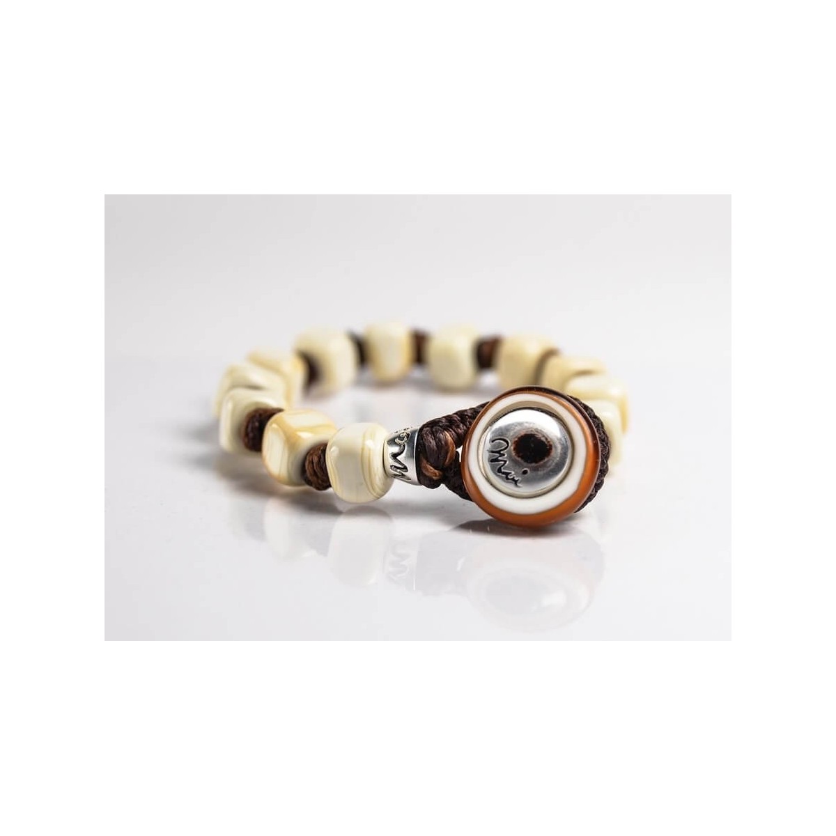 Original Moi men's and women's bracelet with fabric cord and cream-colored murano glass beads - sand, designer Franco Cannarile - Duna