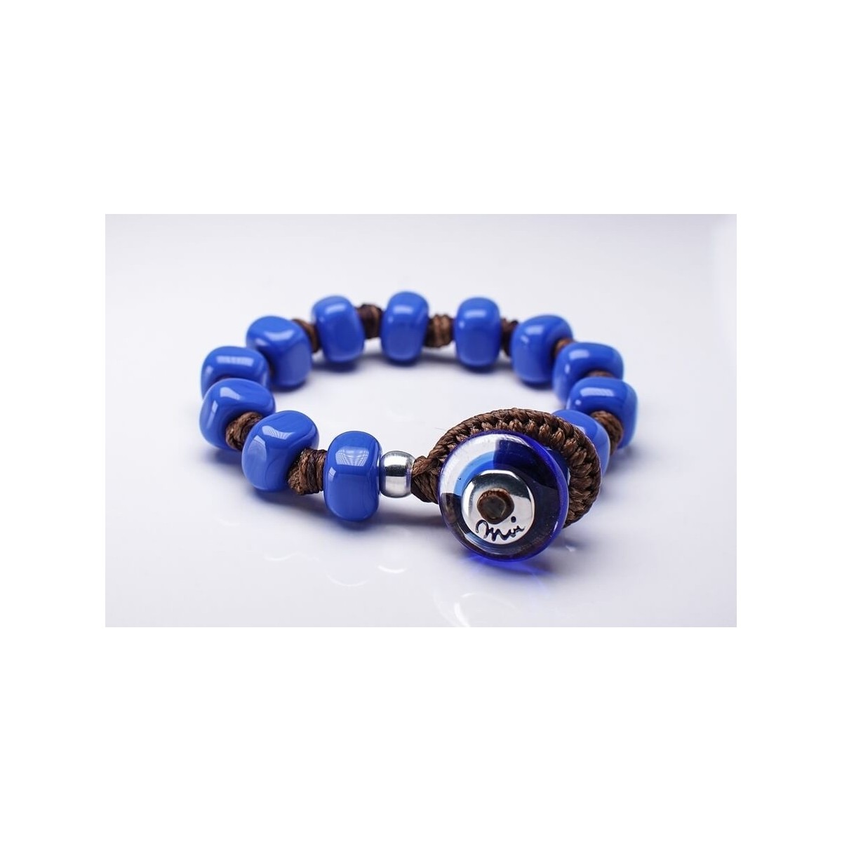 Original Moi men's and women's bracelet with fabric cord and blue Murano glass beads, designer Franco Cannarile - Lapis
