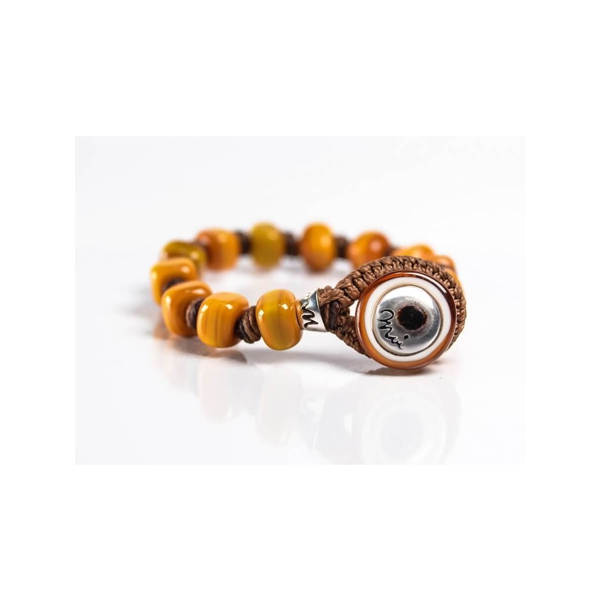 Original Moi men's and women's bracelet with fabric cord and mustard murano glass beads, designer Franco Cannarile - Marrakech