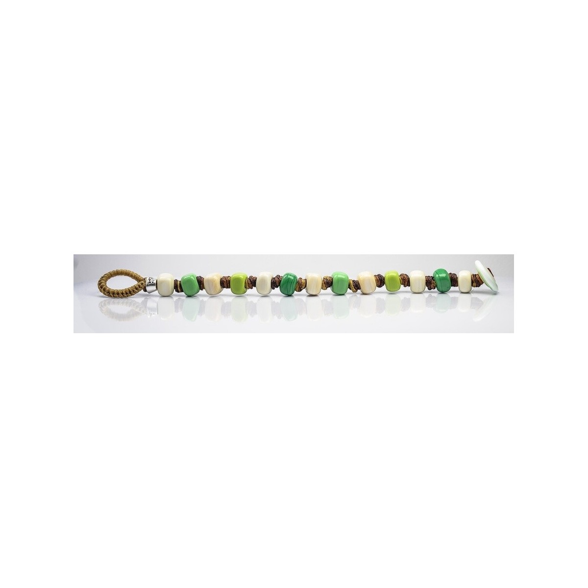 Original Moi men's and women's bracelet with fabric cord and white and green Murano glass beads, designer Franco Cannarile - Viride
