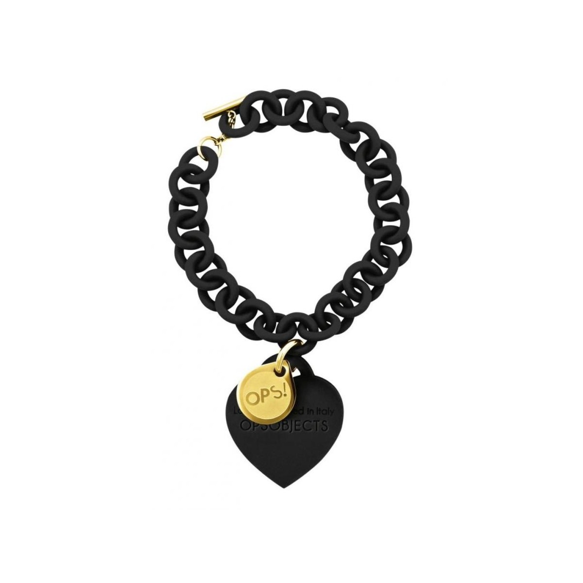 OPS! Love ..., reinterpreting a bracelet with a jewelry icon smile. A chain of non-allergenic resin with velvet touch finish with a big Silicon pendant in the shape of a heart that has suggested the name and a tag-shaped steel "oops!". The heart brings the "lovely designed in Italy" in addition to the Opsobjects logo. One statement but also an open declaration to a funny accessory which conquest! 27 color proposals for a full chromatic range. Fasten the cuff on the wrist with a "T". The entire line of Ops bracelets! Love is a sweet scented fragrance strawberry, able to surprise you with a touch of cheerful cheerfulness