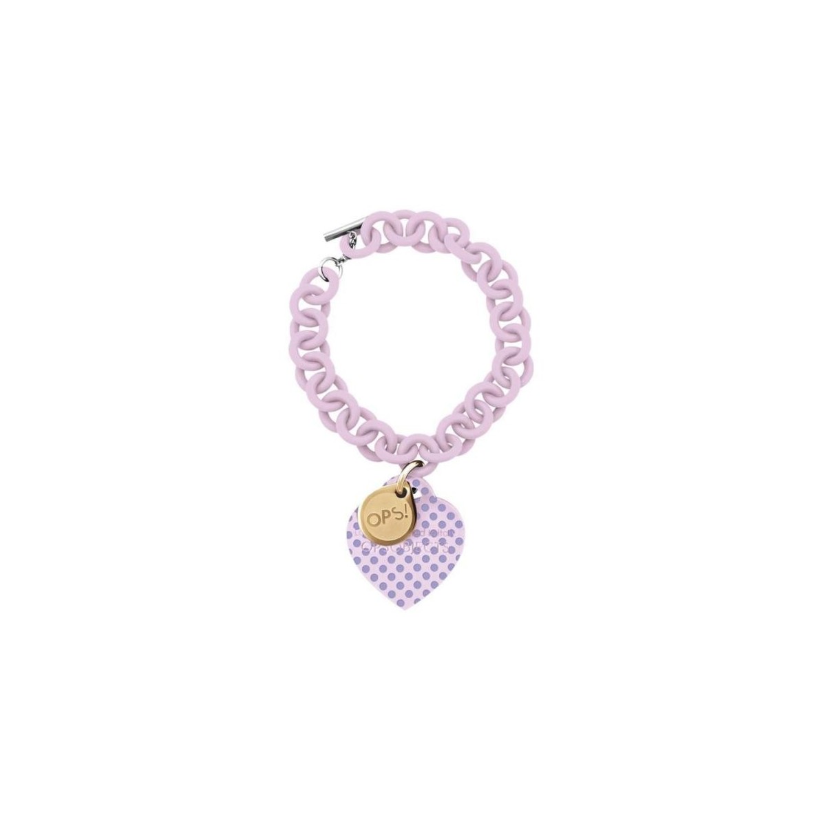 Soft touch resin chain. Silicone heart polka dot textured. Tag steel OPS. "T" closing bar